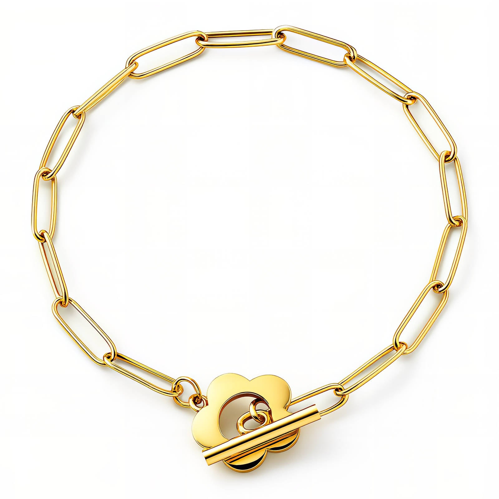 - Design: Fine chain bracelet with elegant flower-inspired clasp